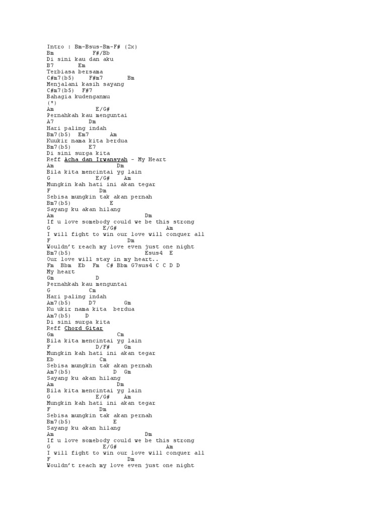 Chord My Heart Acha Ft Irwansyah Kunci Gitar Dasar Dari C Lirik Lagu Di Sini Kau Dan Aku Terbia Tribunmanado Co Id